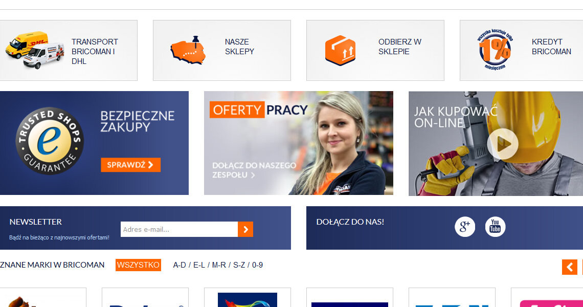 Specjalnie dla marki Bricoman, stworzyliśmy projekt graficzny sklepu internetowego, wykonany w technologii RWD. Tym samym zadbaliśmy o prawidłowy odbiór strony, zarówno przez klientów mobilnych, jak i użytkowników tradycyjnych komputerów. W ramach naszej współpracy, jesteśmy odpowiedzialni również za adaptację projektów offline do sfery online, stworzenie banerów reklamowych na stronę internetową, a także bieżącą rozbudowę projektu o nowe podstrony.