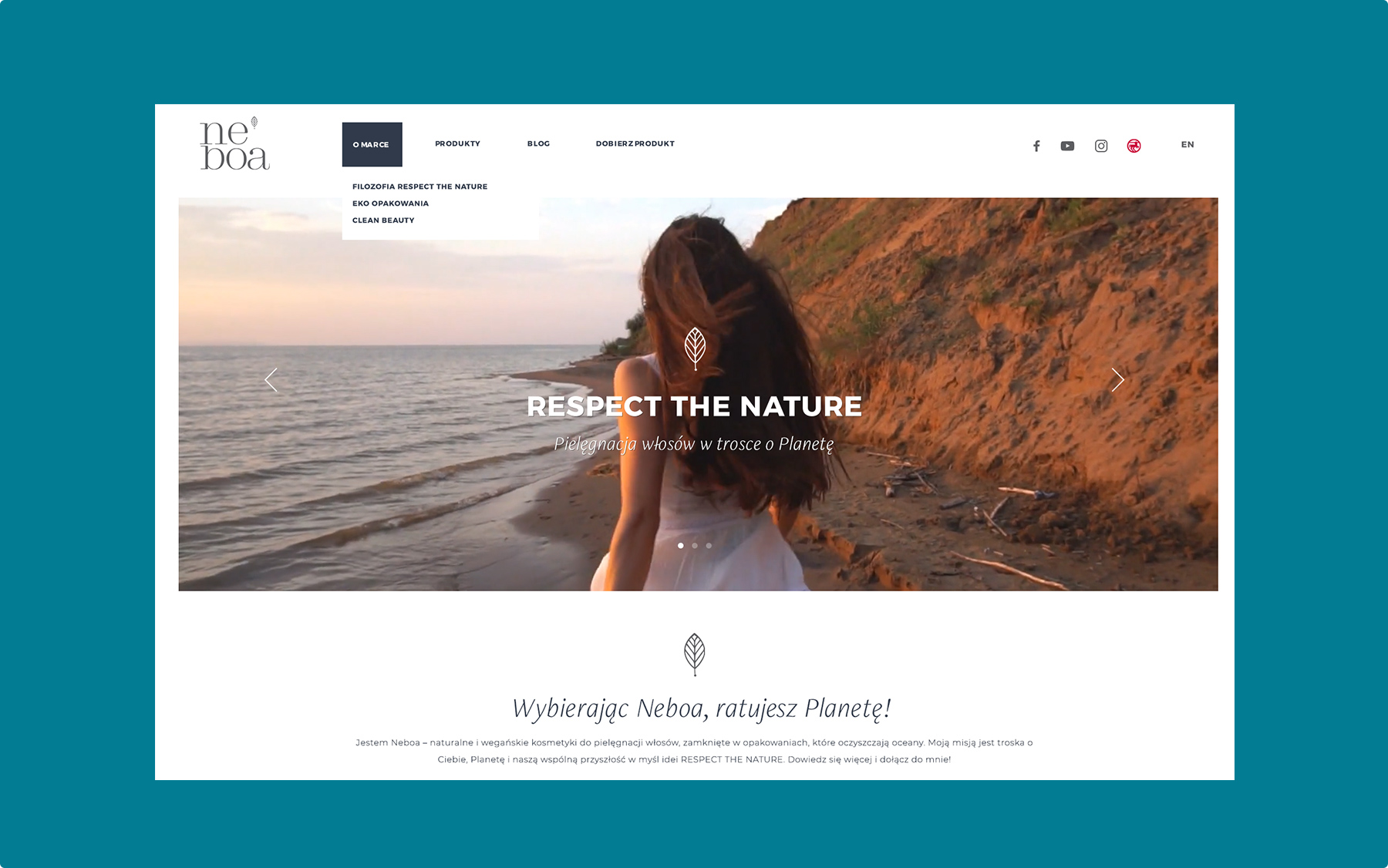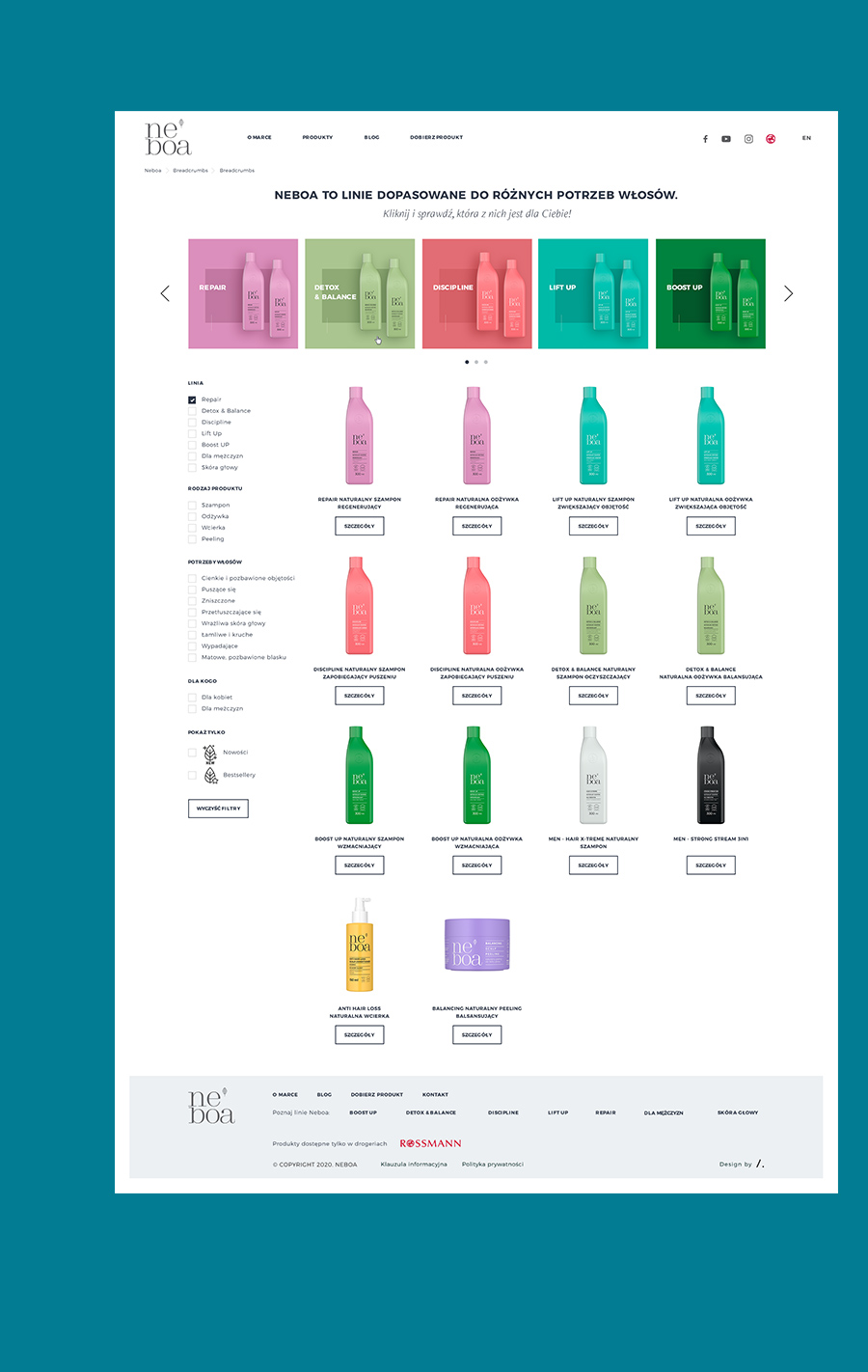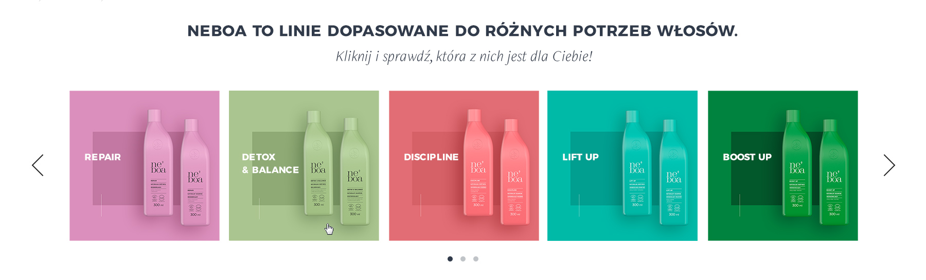 Budując nową stronę dla Neboa postawiliśmy na rich content – atrakcyjne, rozbudowane treści, które pozwalają lepiej zaprezentować produkty i wartości marki. Zamiast standardowych kart produktowych, każda strona została zaprojektowana tak, by angażować użytkowniczki na różnych etapach decyzji zakupowej. Krótkie komunikaty, grafiki i język korzyści trafiają do tych, które chcą szybko podjąć decyzję, a jednocześnie nie brakuje treści dla bardziej dociekliwych włosomaniaczek, które chcą wiedzieć wszystko – od składu po sposób działania. Dzięki temu zakupy stają się bardziej świadome, a całość lepiej oddaje filozofię Neboa – w trosce o włosy i o naturę.