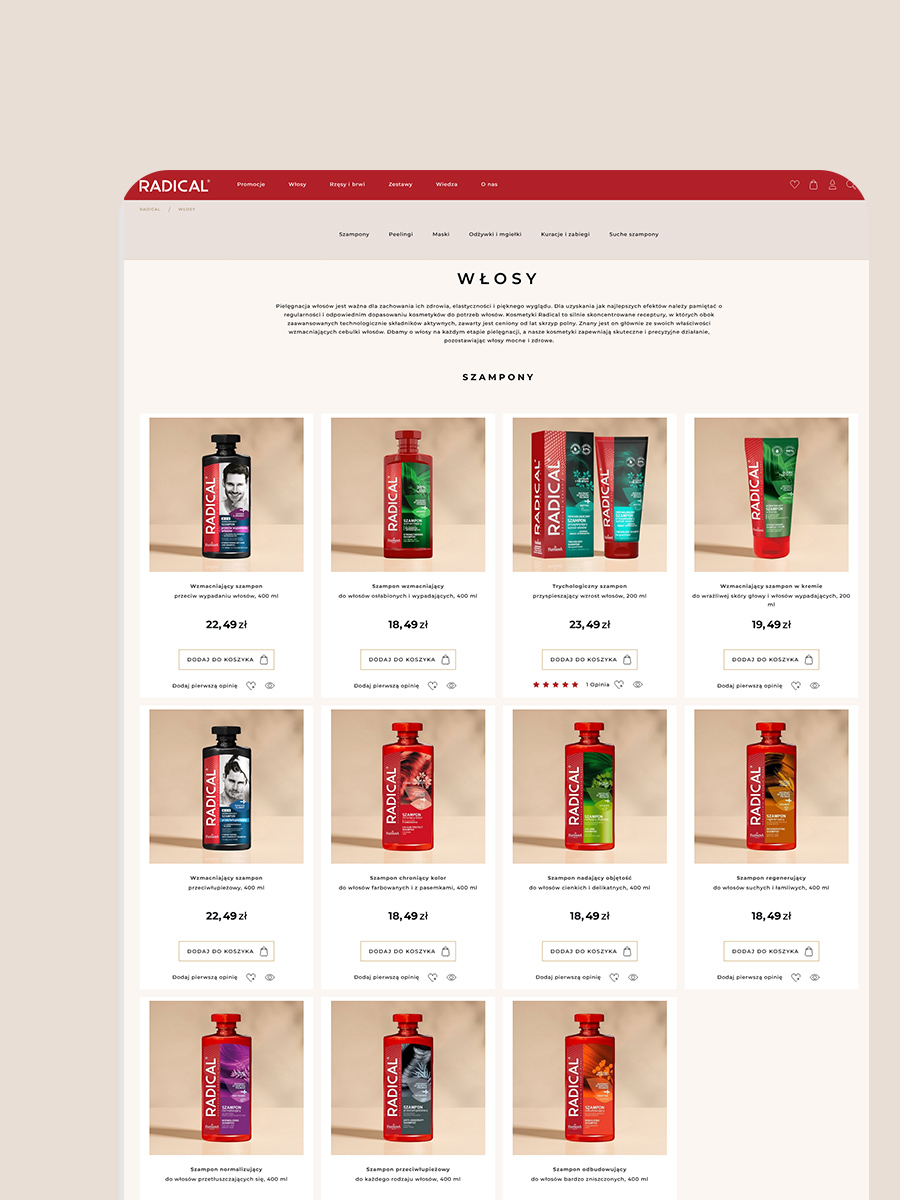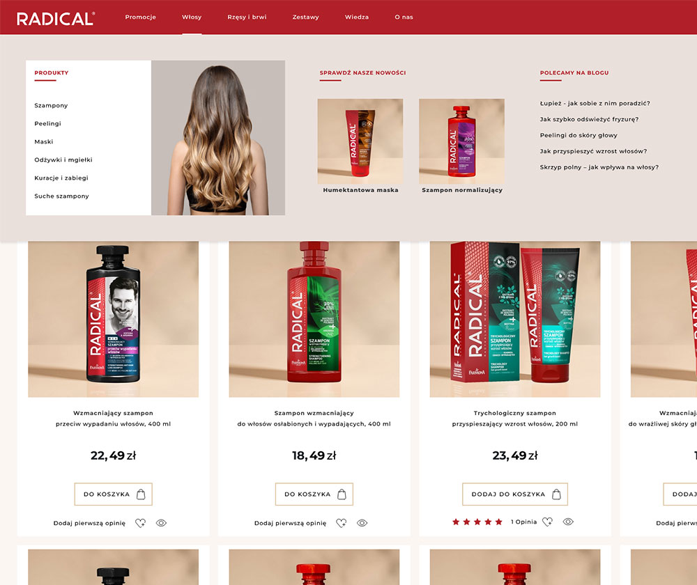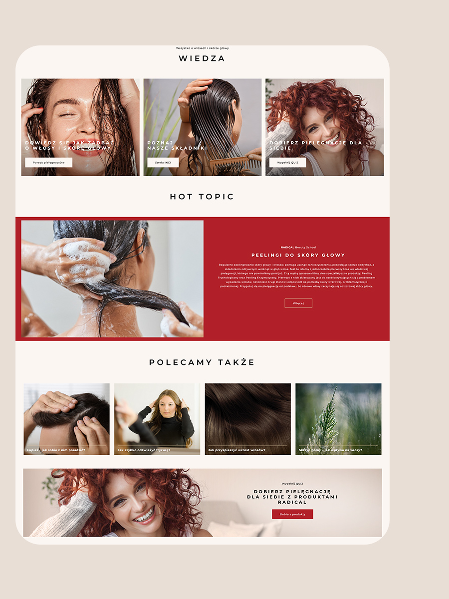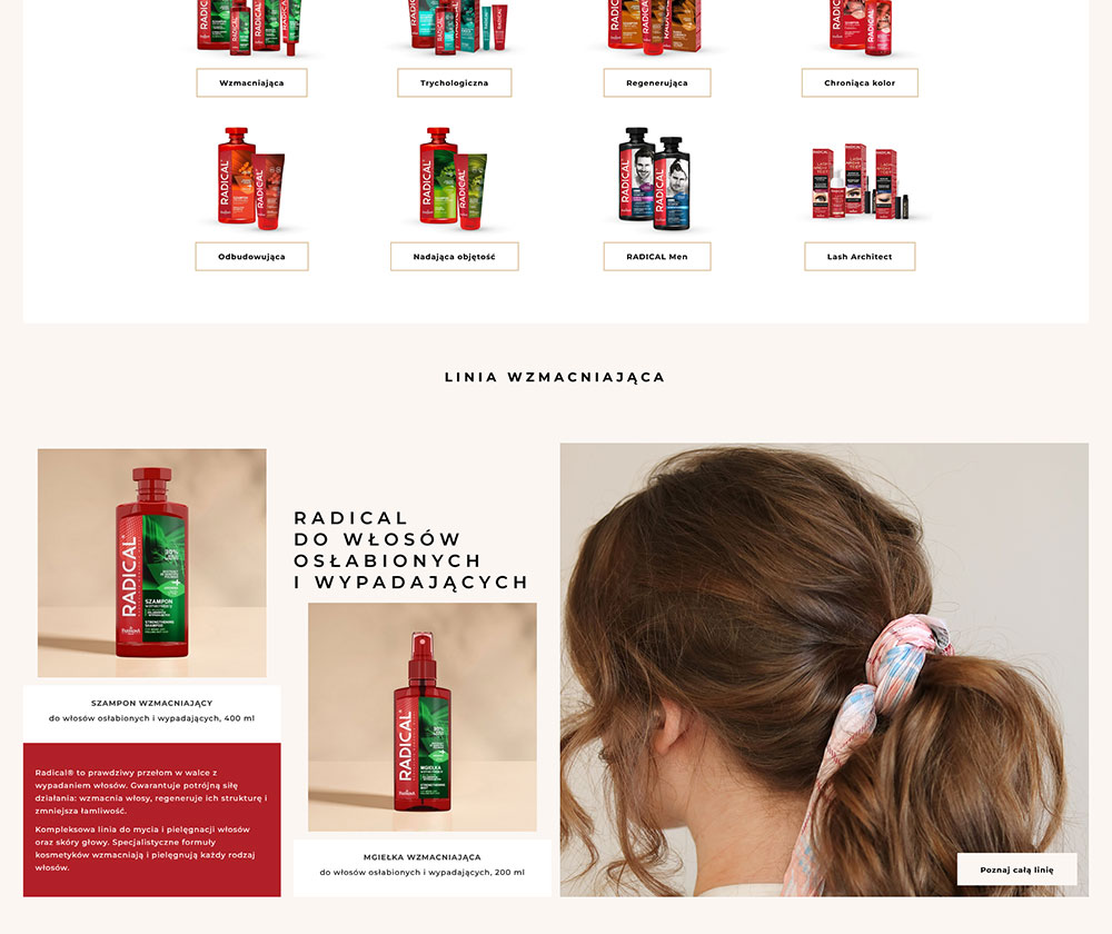 Nowa strona Radical zaprasza do świata profesjonalnej pielęgnacji włosów – miejsca, gdzie pasja do piękna spotyka się z nowoczesnym, minimalistycznym designem. Stworzona z myślą o użytkowniku, łączy elegancję z funkcjonalnością, oferując intuicyjną nawigację i spójne doświadczenie wizualne.