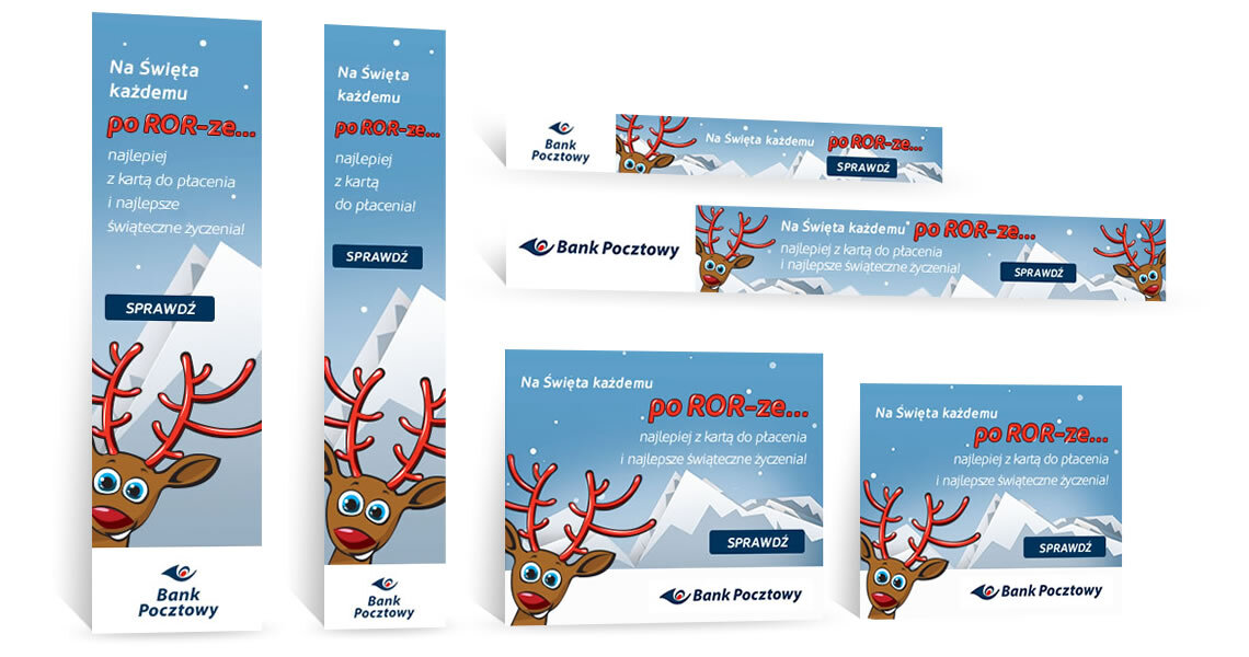 Odpowiadaliśmy za oprawę graficzną kampanii banerowej dla Banku Pocztowego. Przedmiotem reklamy była usługa Rachunku Oszczędnościowo – Rozliczeniowego. To kolejna udana realizacja naszej agencji dla Banku Pocztowego. Banery zaprojektowane przez nasz zespół można było zobaczyć na największych polskich portalach, m.in.: Onet.pl, Gazeta.pl czy Fakt.pl.