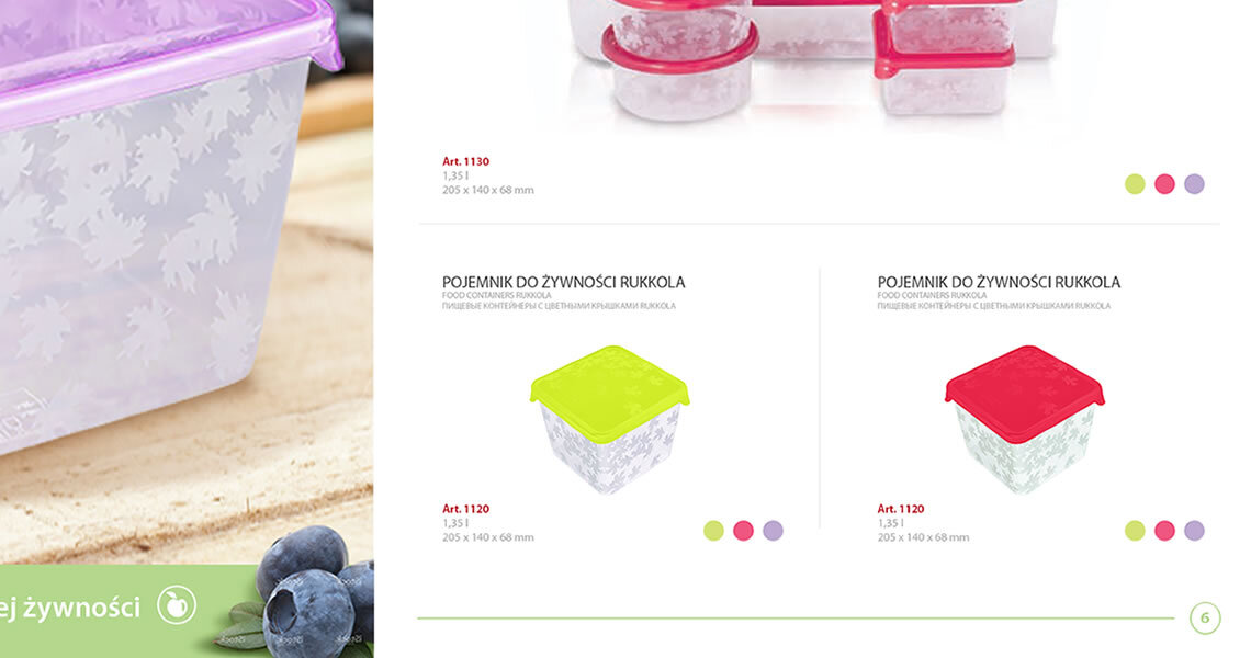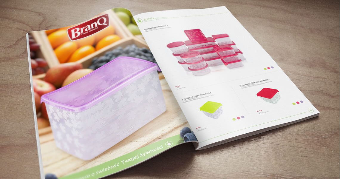 Nasza agencja wzięła udział w konkursie na projekt katalogu, który w uporządkowany i estetyczny sposób prezentuje asortyment marki (pojemniki na żywność, produkty gospodarstwa domowego itp.). Tworząc katalog postawiliśmy na przejrzystość, miłą