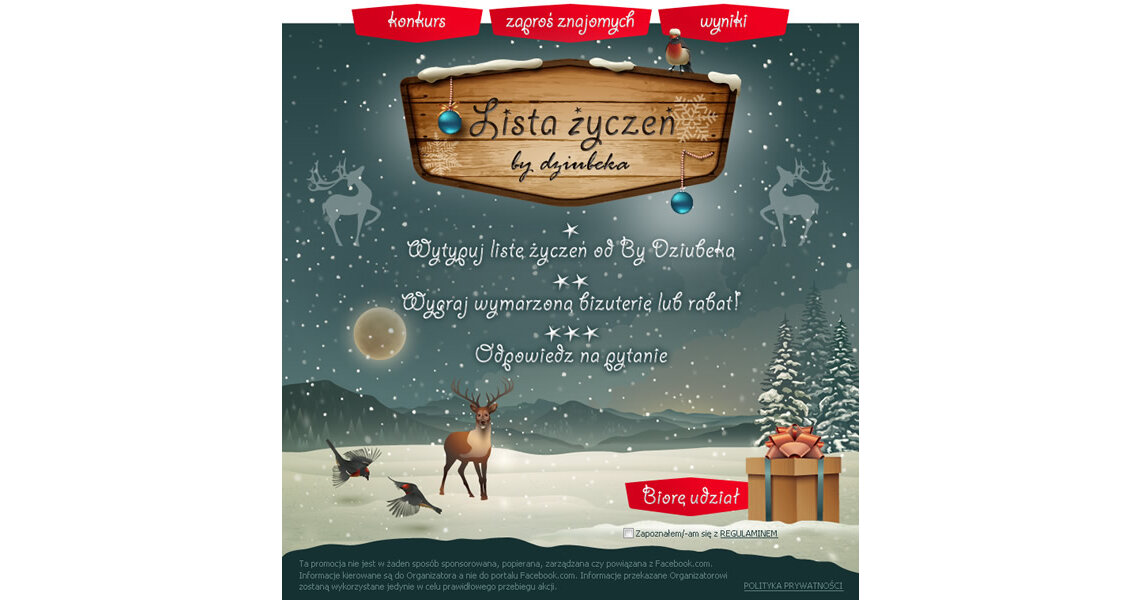 Zadaniem Uczestnika konkursu było wytypowanie, która lista życzeń była realizowana danego dnia, a następnie udzielenie interesującej odpowiedzi na pytanie. Każdego dnia jedna osoba wygrywała zestaw biżuterii, a kilka innych było nagradzanych bransoletką lub naszyjnikiem.