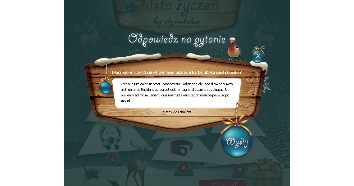Konkurs bożonarodzeniowy, którego formuła polegała na tym, że każdego dnia przedstawione były 3 listy życzeń w graficznej formie choinek, z czego jedna lista była realizowana.