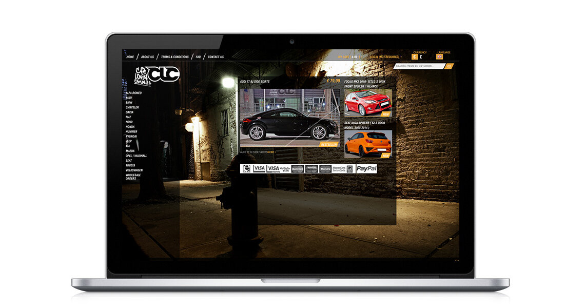 Ze względu na ogólnoświatowy zasięg marki, konieczne było wprowadzenie kilku udogodnień do projektu. Ofertę Car Lovin Criminals możemy przeglądać zatem zarówno w euro jak i w funtach - wystarczy zaledwie jedno kliknięcie myszki. Następnie możemy błyskawicznie dokonać płatności, dzięki zintegrowaniu sklepu z PayPal.