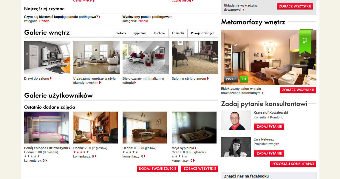Nasze zadanie polegało na zaprojektowaniu serwisu pod kątem graficznym tak, aby użytkownicy czuli się na nim dobrze i często do niego wracali. Serwis zawiera szereg funkcjonalności, m.in. porady, galerie wnętrz, metamorfozy, daje również możliwość dodawania swoich treści przez zalogowanych użytkowników.