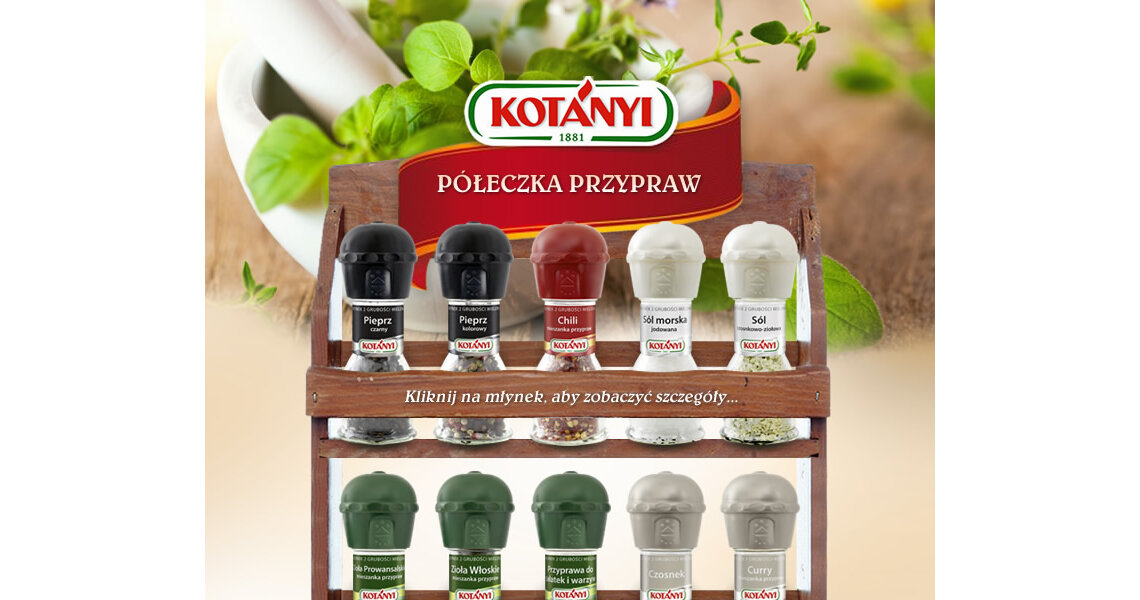 Lubimy mieć wszystko dobrze doprawione! Na profilu Kotányi uruchomiliśmy specjalną aplikację „Półeczka przypraw”, dzięki której