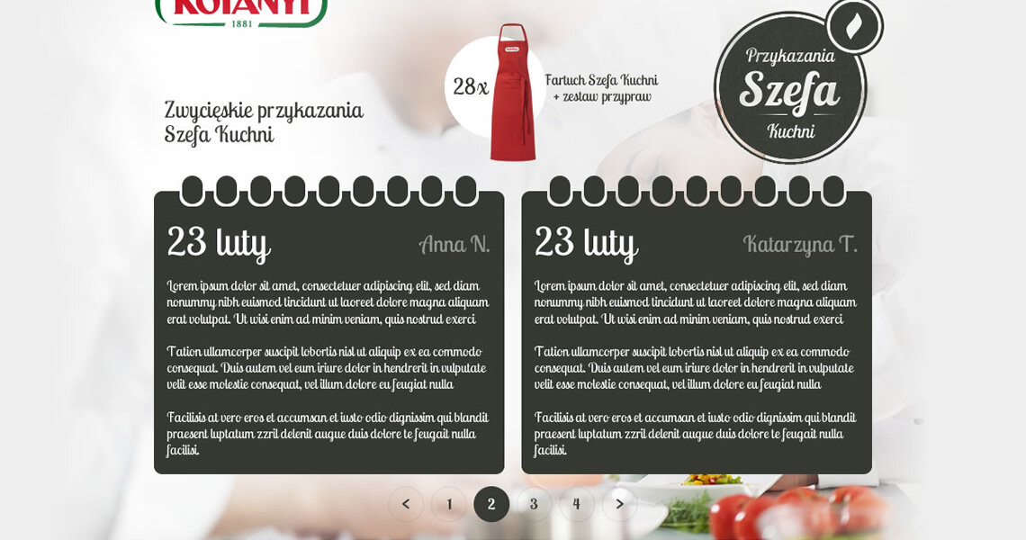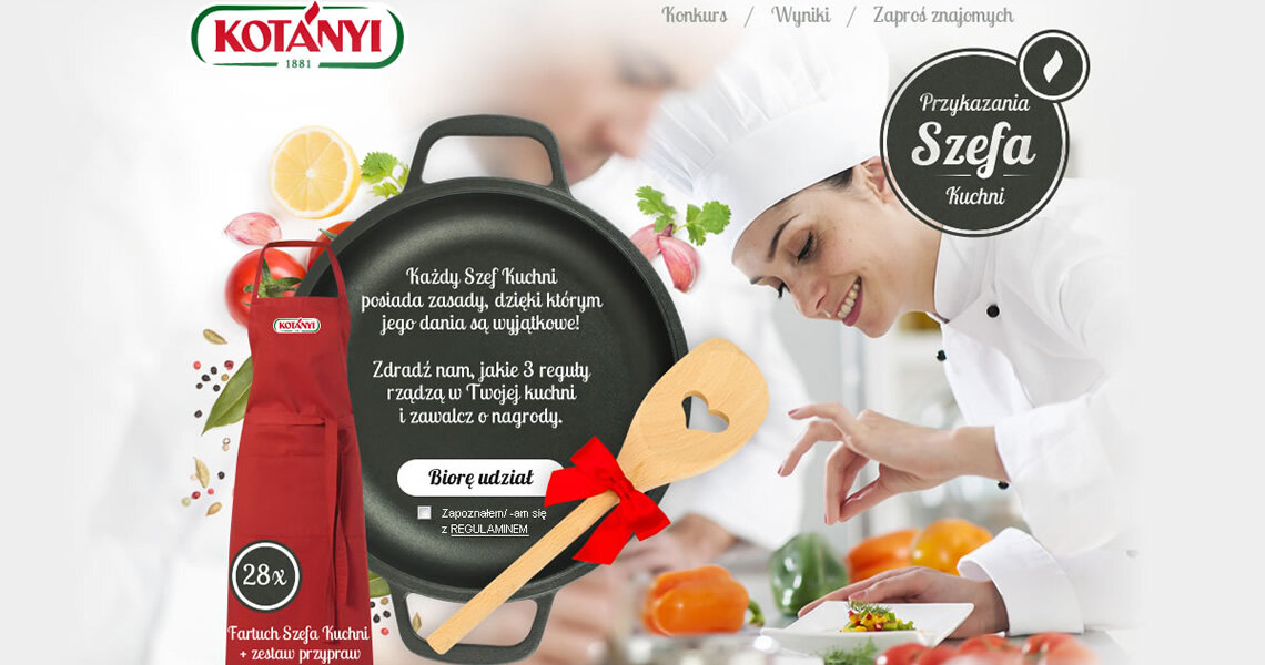 Celem aplikacji konkursowej „Przykazania Szefa Kuchni” było zwiększenie aktywności i zaangażowania Fanów w serwisie Facebook, a także budowanie przyjaznego wizerunku marki. Konkurs pośrednio nawiązywał do programu „MasterChef”, którego marka była partnerem w 2014 r.