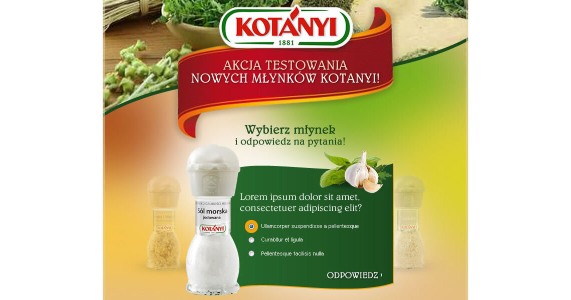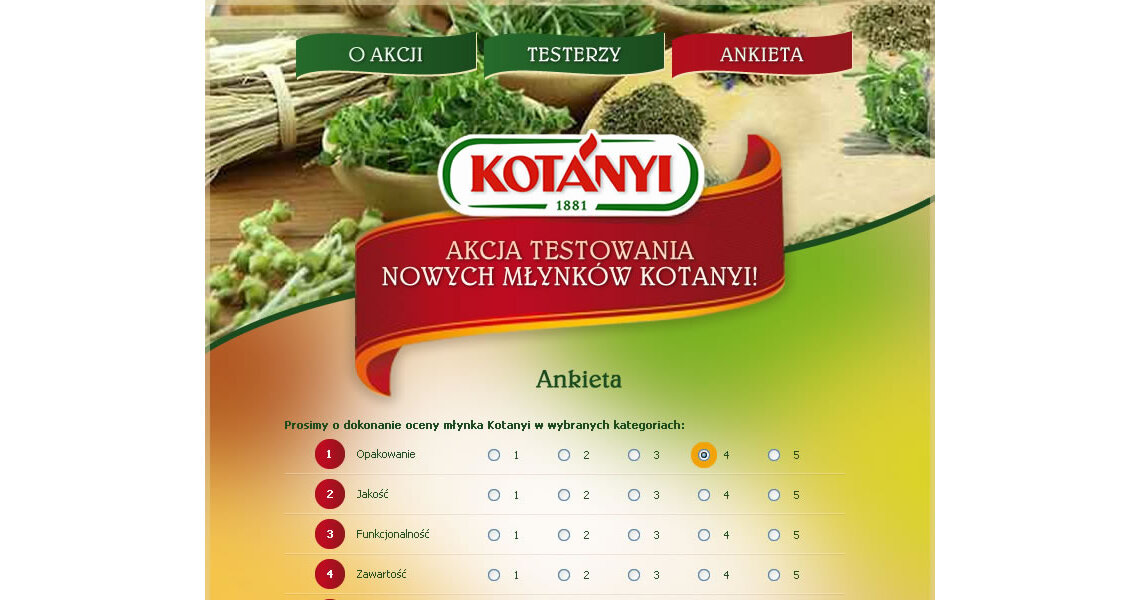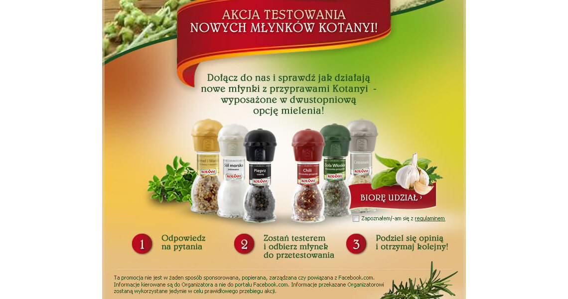 Pierwszą akcją, którą zrealizowaliśmy wspólnie z Kotányi, było testowanie nowych młynków marki. Za pomocą specjalnej aplikacji wyłoniliśmy 150 Testerów, którzy mieli miesiąc na wypróbowanie produktu. Akcja wspierana była dodatkowymi narzędziami, takimi jak: press room, womm, kampania reklamowa.