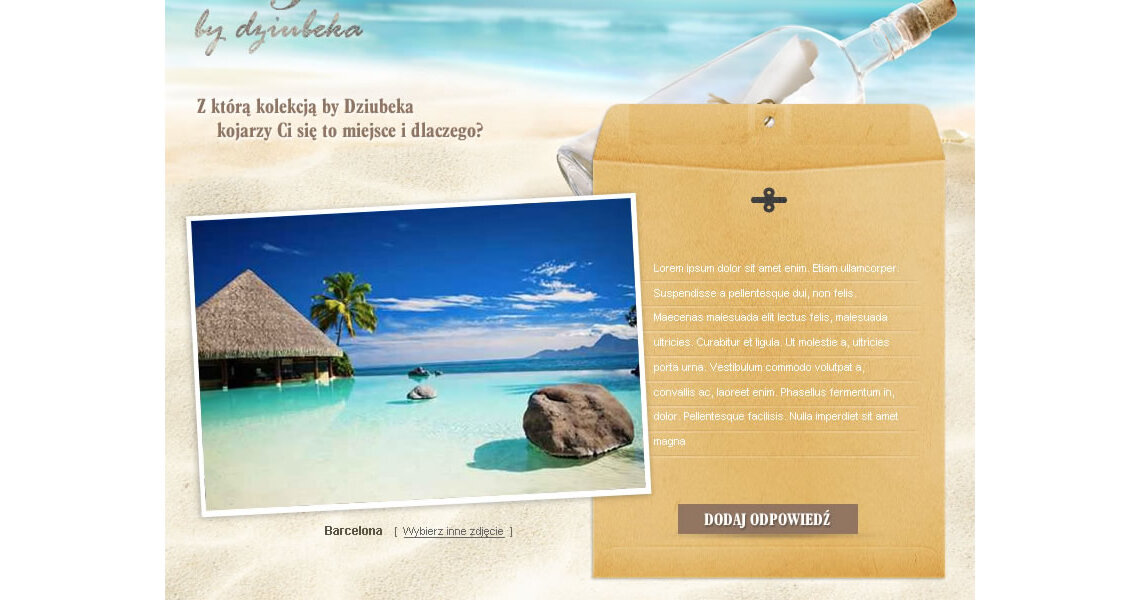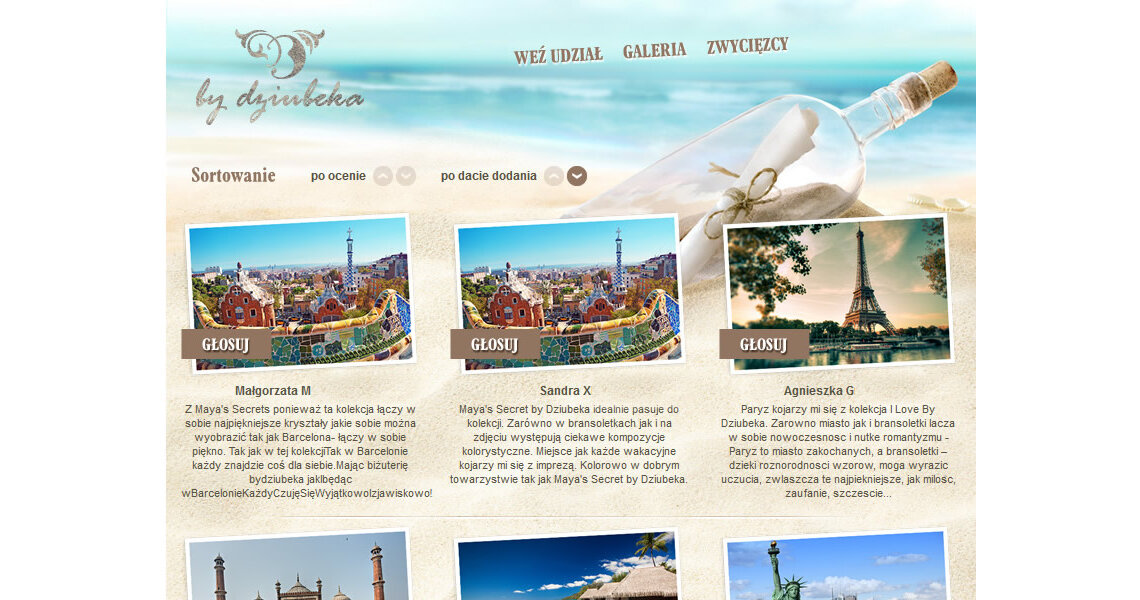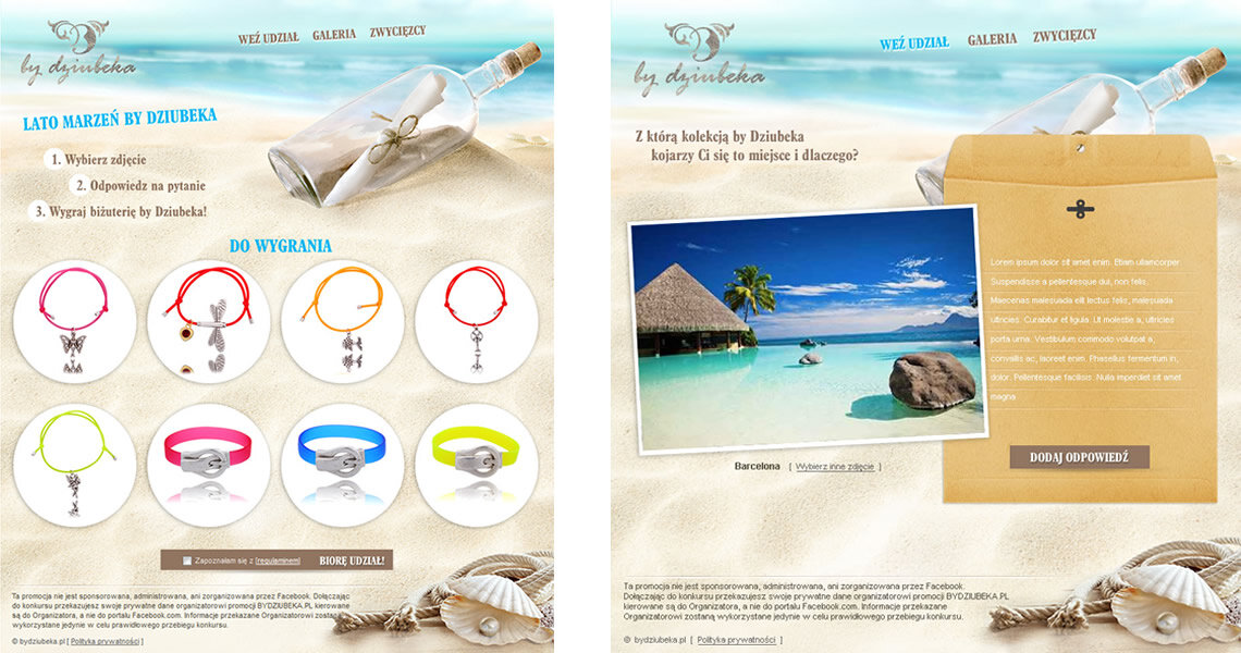 Podczas wakacyjnego konkursu zadaniem uczestniczek było wybranie jednego zdjęcia, przedstawiającego popularne wakacyjne destynacje, a następnie udzieleniu odpowiedzi na pytanie: „Z którą kolekcją By Dziubeka kojarzy Ci się to miejsce i dlaczego?”.