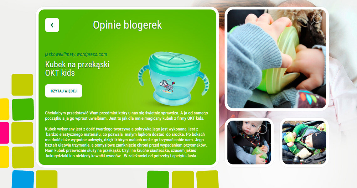 Najbardziej wiarygodne recenzje produktów to te napisane przez użytkowniczki! Dlatego też postanowiliśmy stworzyć specjalną platformę mamytestuja.pl, na której cyklicznie organizowane są akcje testowania produktów OKT kids. Poza tym, na stronie znajduje się osobna sekcja prezentująca opinie blogerek parentingowych.