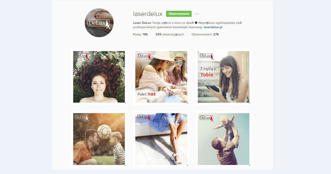 W tym celu prowadzimy komunikację dla marki Laser DeLux - jednej z największych w polskiej branży estetycznej, posiadającej 18 salonów w całym kraju. Dzięki zaproponowanej przez nas strategii, udało nam się stworzyć unikatową i atrakcyjną wizytówkę firmy, pod postacią profili społecznościowych na Facebooku i Instagramie. Nasze działania nie tylko zwiększyły świadomość użytkowników dotyczącą marki, ale też wzmocniły jej pozycję na rynku. W prowadzonych działaniach postawiliśmy sobie trzy główne cele: