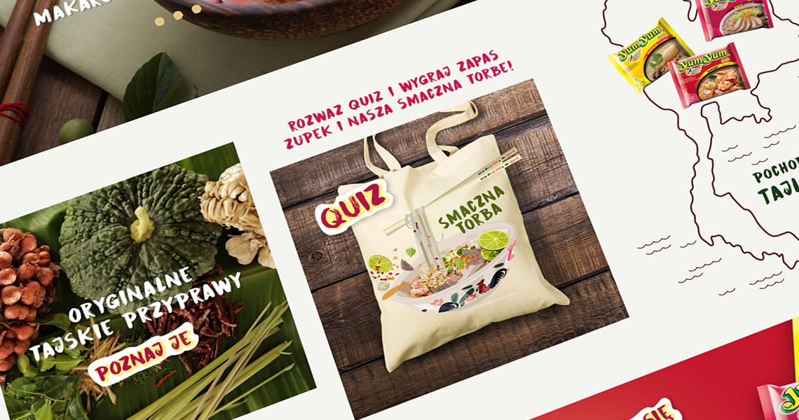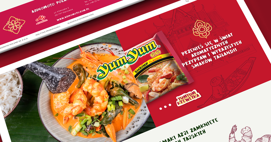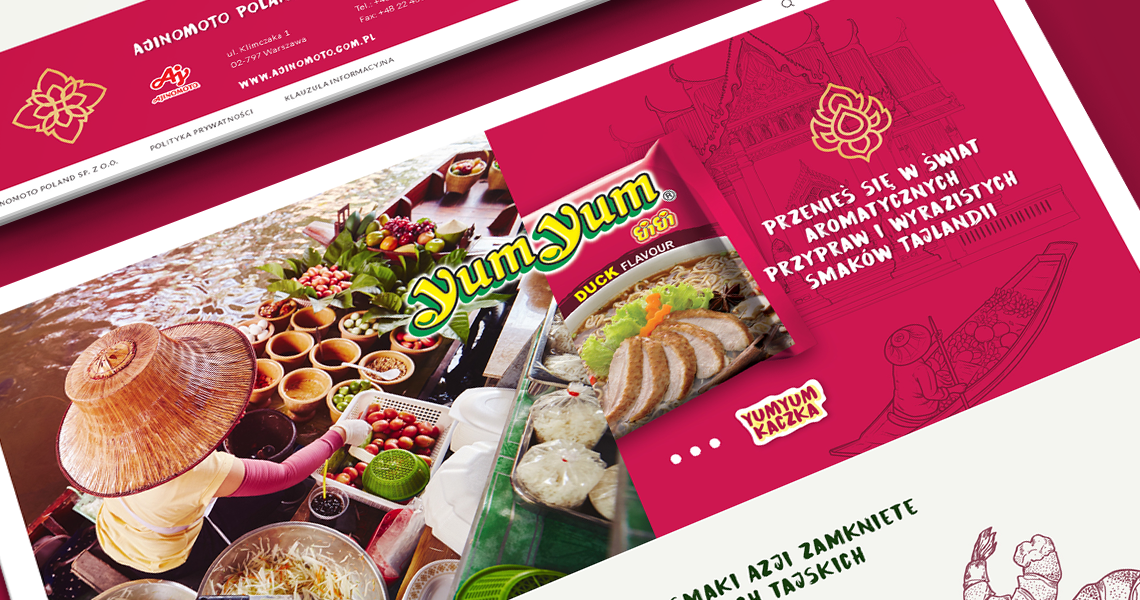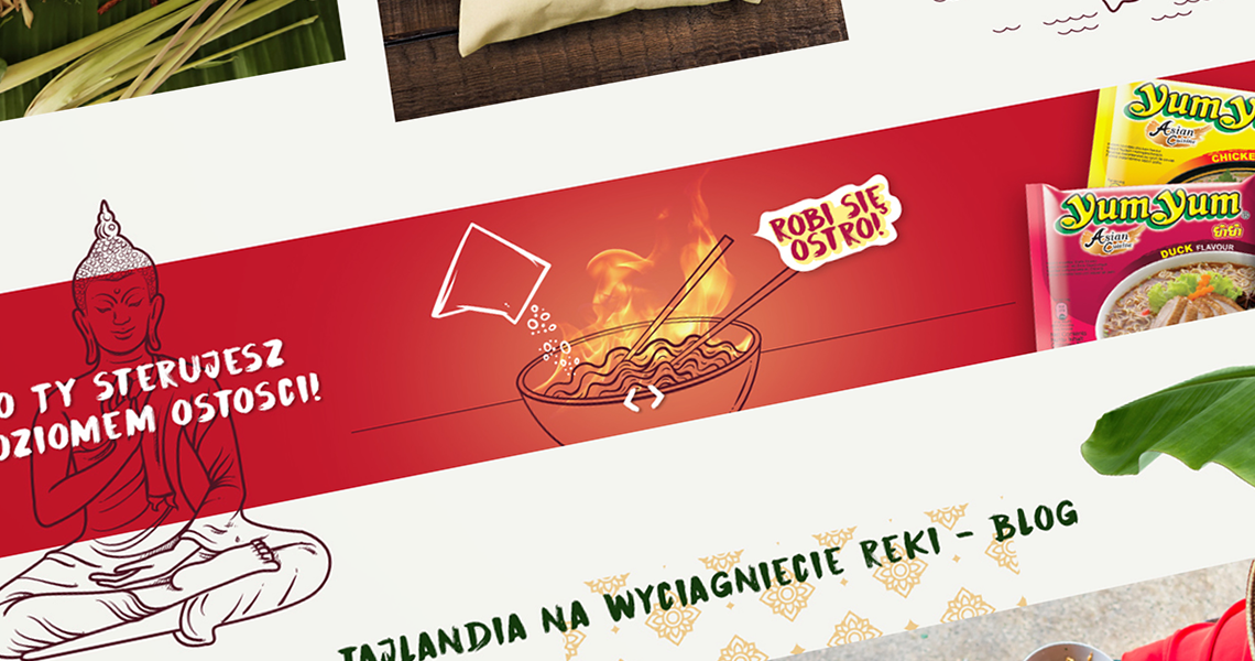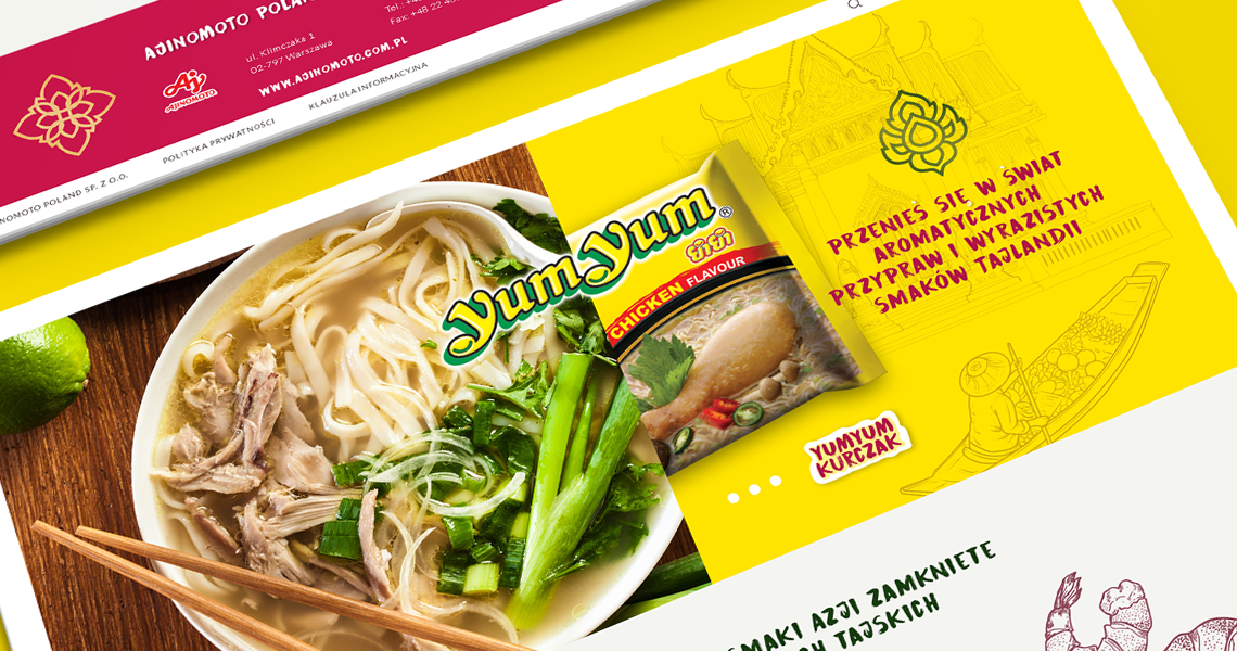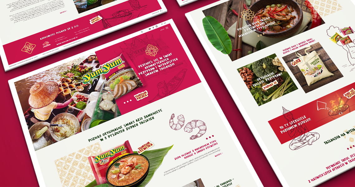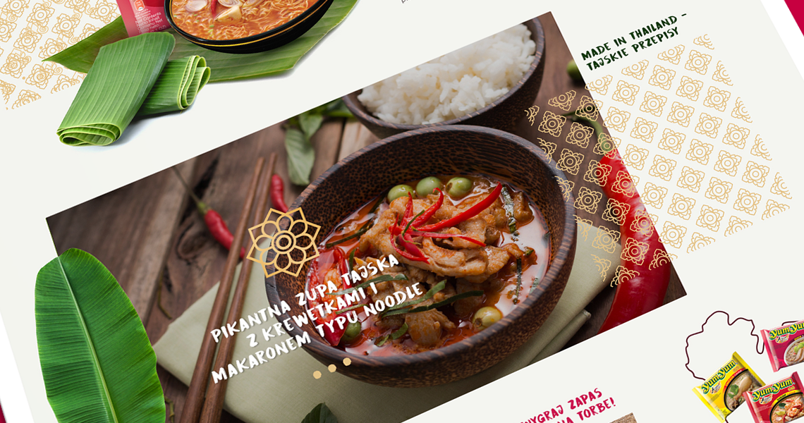 Projekt konkursowy strony www dla marki Yum Yum (japońskiego koncernu Ajinomoto) został przemyślany w najdrobniejszym szczególe.