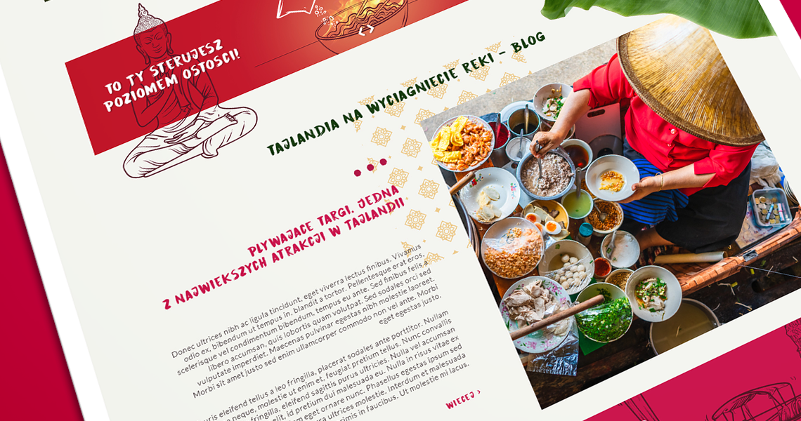 Strona nawiązuje do klimatu Tajlandii, w projekcie przeplatają się elementy naturalne (liście bananowca) i złote ornamenty Kraju Wiecznego Uśmiechu.