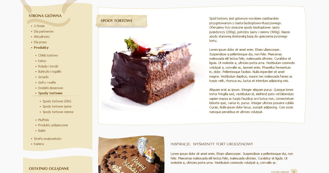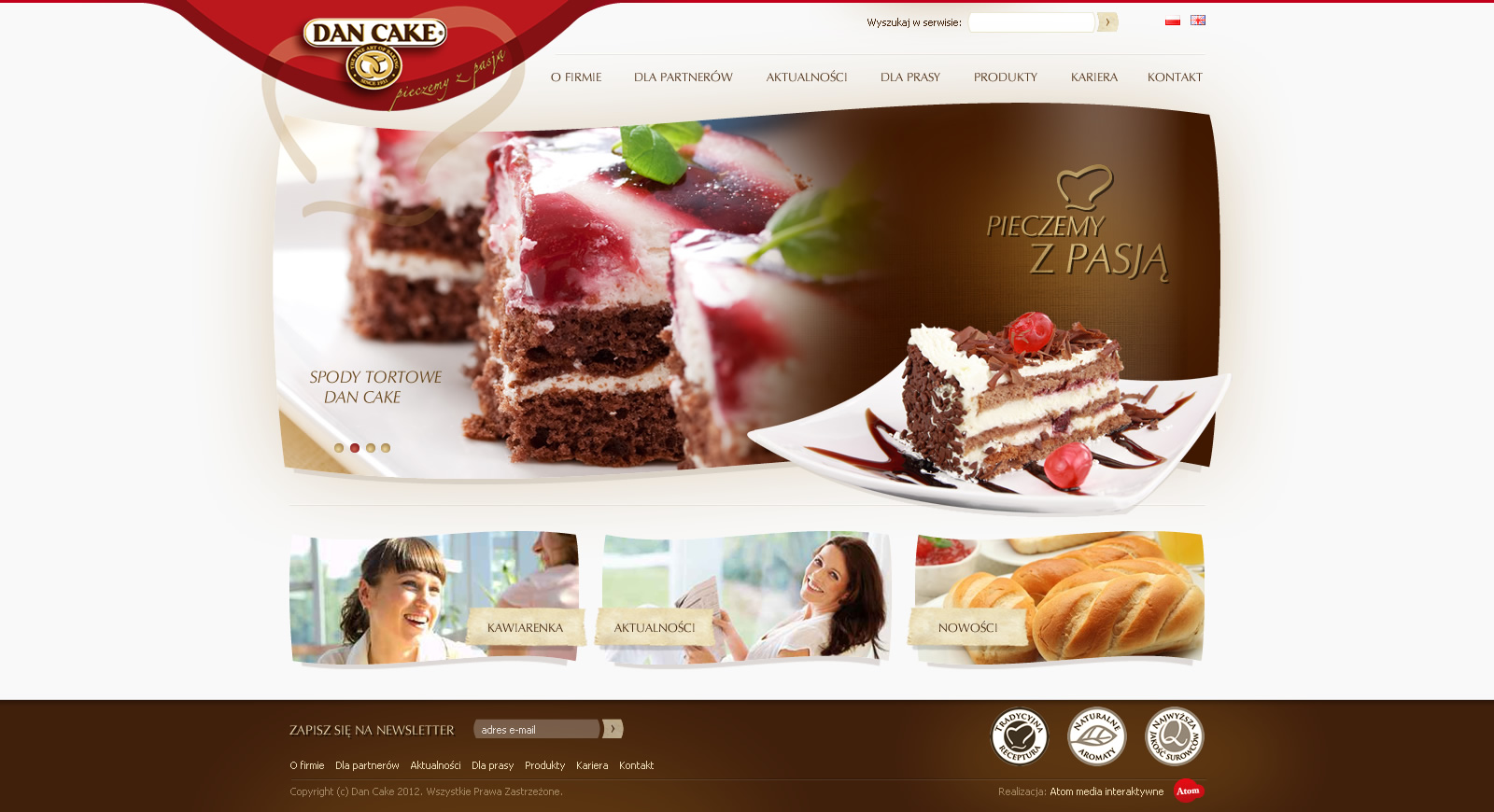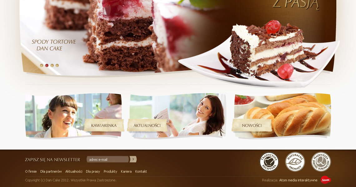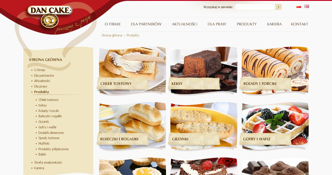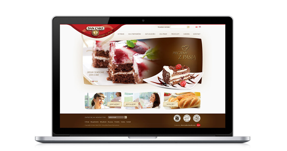 Projekt konkursowy strony Dan Cake, producenta wypieków oraz dodatków cukierniczych.