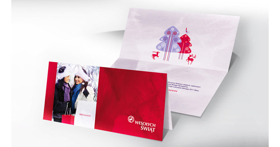 Dla Rossmanna, najpopularniejszej w Polsce sieci drogerii, wykonaliśmy projekt kartek świątecznych, które rozsyłane były
