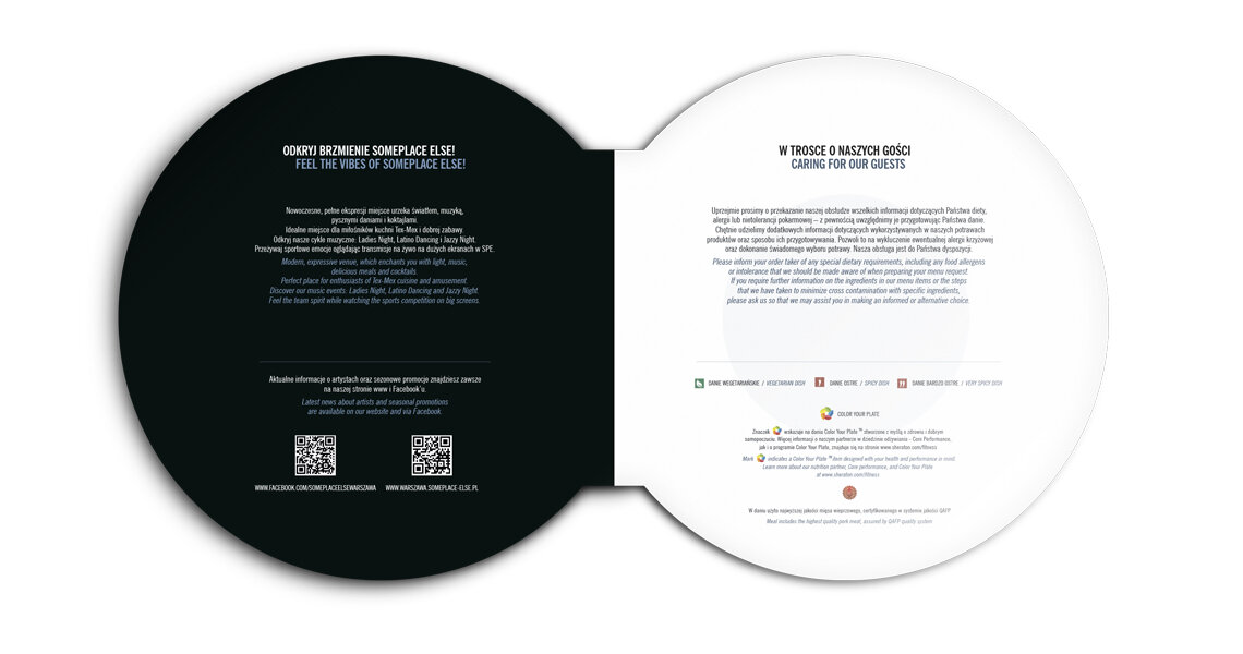 Mieliśmy okazję przygotować wyjątkowy projekt dla restauracji SomePlace Else w Warszawie. Naszym zadaniem było stworzenie menu, którego okładka będzie łudząco przypominać płytę winylową. Ważne jest to, że odpowiadaliśmy zarówno za projekt graficzny, jak i za druk. W efekcie wyszło rewelacyjnie! Nasza płyta zdobyła prawdziwe uznanie wśród klientów restauracji.