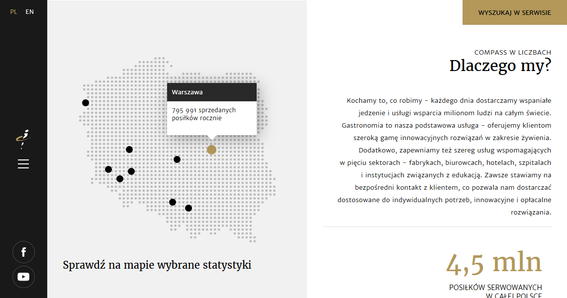 Compass Group Poland codziennie dba o zaplecza gastronomiczne setek polskich firm. Od 25 lat działa w branży usług żywienia zbiorowego z pełną pasją i profesjonalizmem. Dlatego wybrali ATOM Agency, jako partnera, który w ten sam sposób spełni ich oczekiwania i zbuduje nowoczesną witrynę, która podkreśli pozycję lidera w branży. Efekt pracy dostępne pod adresem http://compass-group.pl.