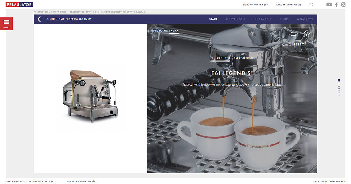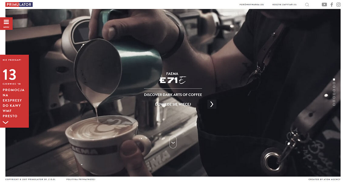 Atrakcyjna i niezwykle funkcjonalna witryna, jaką stworzyliśmy dla naszego Klienta to już druga misja www, zrealizowana razem z marką Primulator – jednym z wiodących dostawców urządzeń gastronomicznych, obsługujących europejski rynek hotelarsko-gastronomiczny. Trwająca ponad 10 lat współpraca rozpoczęła się od stworzenia nowatorskiej strony, która wówczas stała się inspiracją i punktem odniesienia dla witryn konkurencji. Nasz projekt został również wykorzystany przez inne europejskie oddziały firmy, m.in. na Litwie i Łotwie. Po latach, gdy Primulator postanowił odświeżyć swoją internetową wizytówkę, przygotowaliśmy zaawansowany graficznie i technologicznie projekt, który znów ma szansę stać się wzorem dla innych podmiotów w branży.