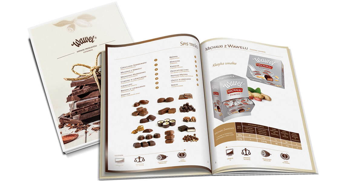 Stworzyliśmy dla firmy Wawel projekt konkursowy katalogu produktowego na rok 2014. Projekt prezentował apetyczną okładkę, wyśmienite strony produktowe, wyborny spis treści oraz krótki opis historii firmy. Zdecydowaliśmy się na bardzo delikatny i smakowity layout.