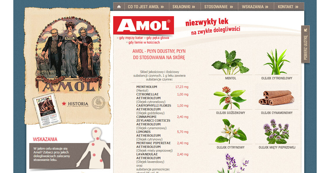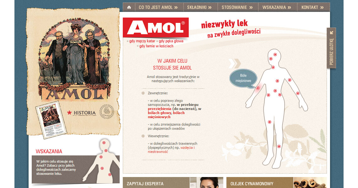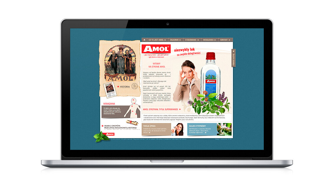 Dla marki AMOL, kultowego już środka „dosłownie na wszystko", stworzyliśmy stronę, która w swojej stylistyce nawiązuje zarówno