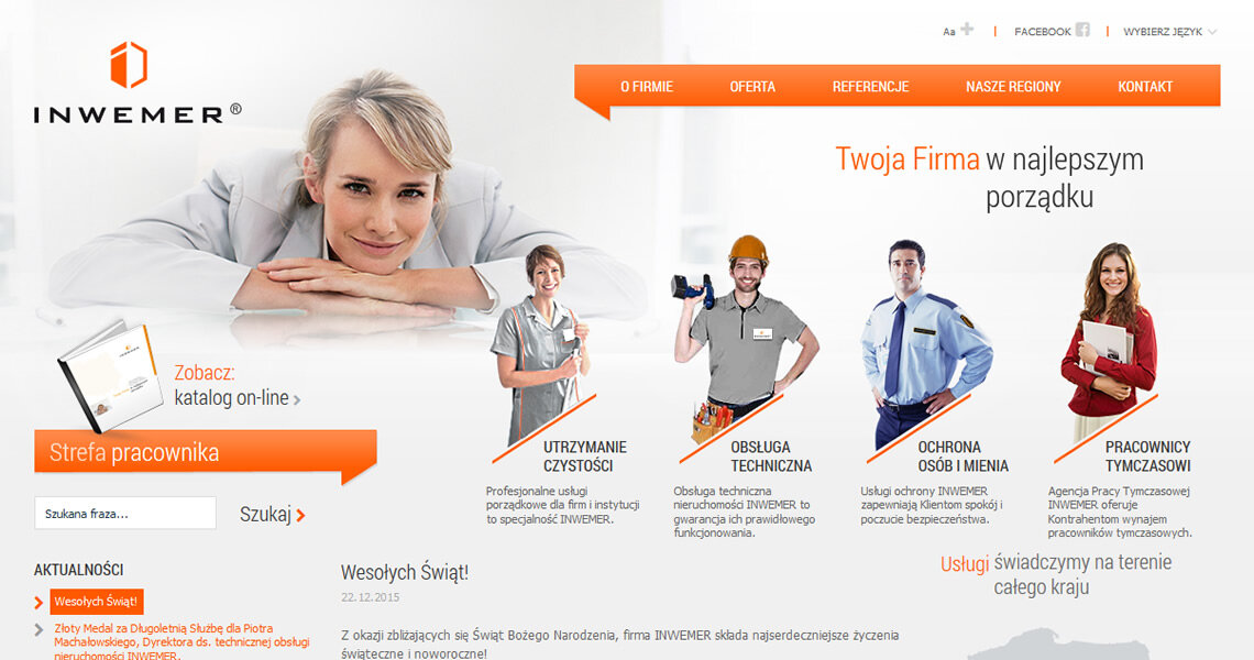Odpowiadamy za projekt i wykonanie strony internetowej dla lidera usług wspierających firmy i instytucje - marki Inwemer.